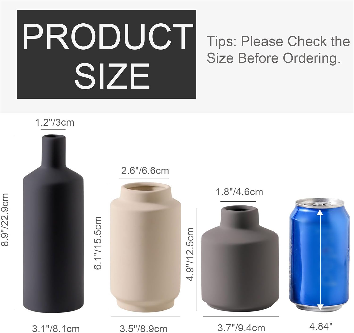 Ceramic Vase Set of 3, Modern Decorative Vases for Home Decor, Small Flower Pottery Vase Sets, Boho Farmhouse Rustic Vases for Living Room, Kitchen, Bedroom, Bathroom, Shelf, Table